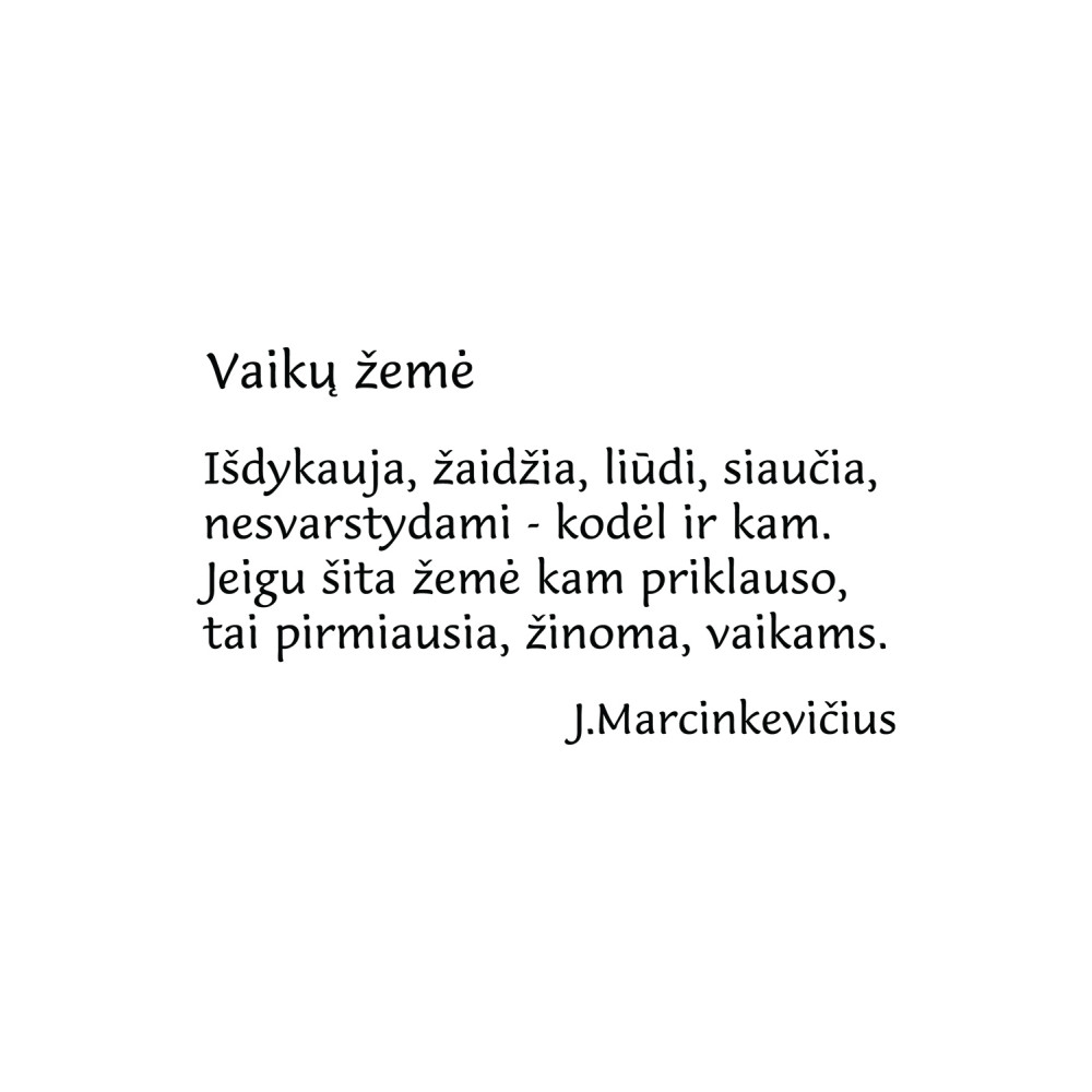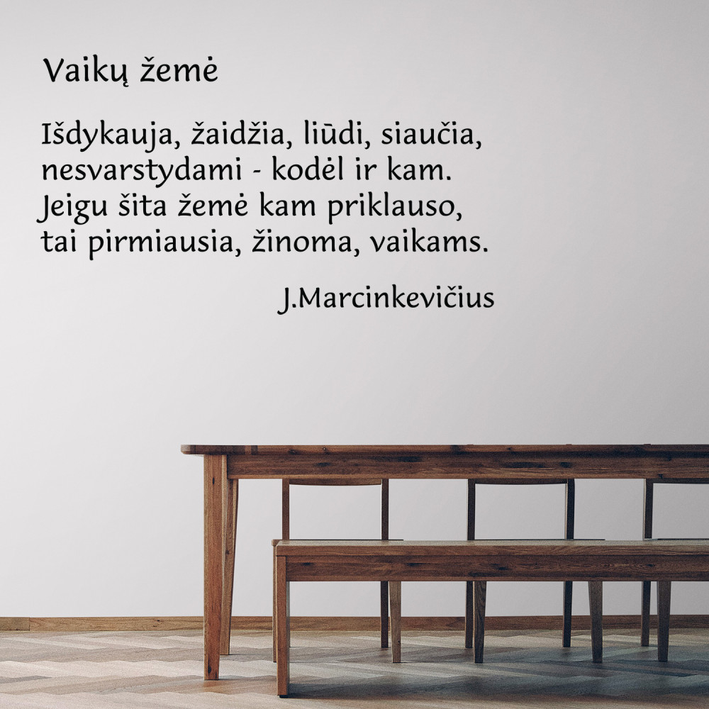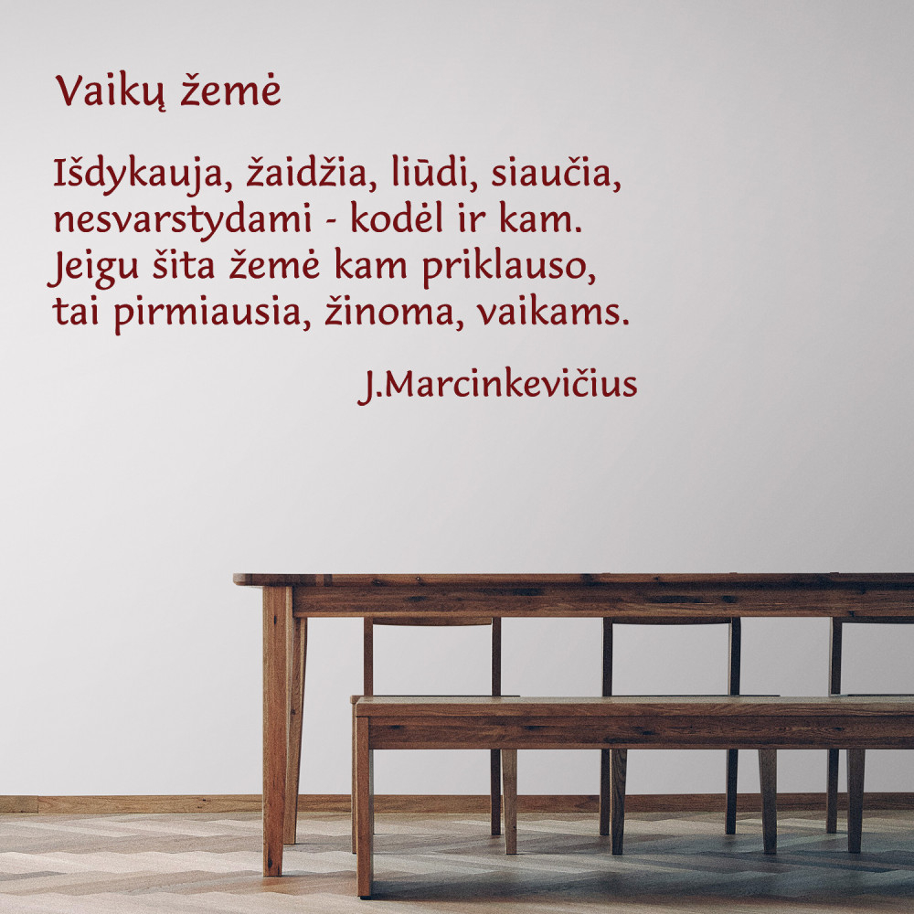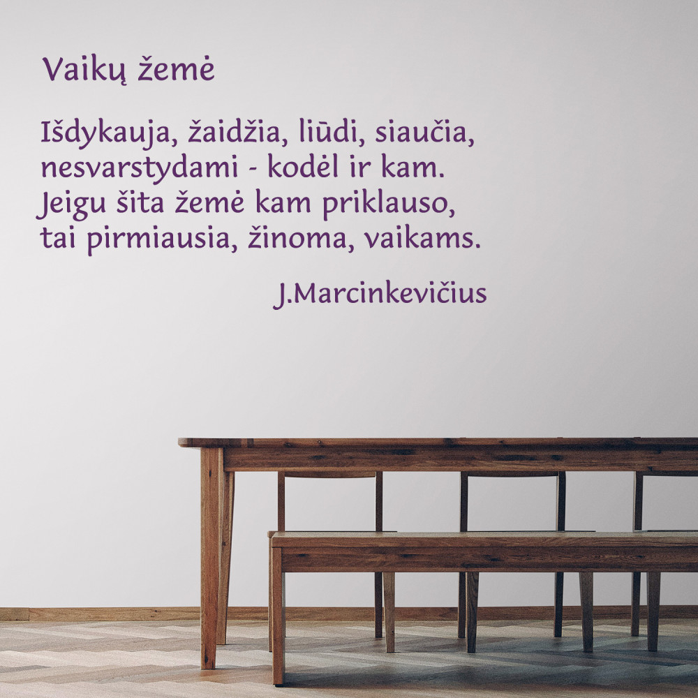 Wonderful excerpt from J.Marcinkevičius' poem "Children's Land" can meaningfully decorate the space of a kindergarten, school, children's playroom, or your child's room.