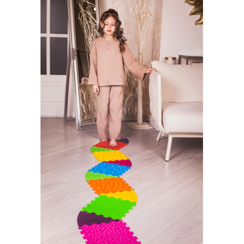 Ortek "Dinosaurused" sensoorne ortopeediline puslematt on loodud jalatalla massaažiks, paljajalu taktiilseks sensoorseks rajaks ja tasakaalu parandamiseks läbi liikumise. See komplekt eristub sellega, et lisaks peamistele massaaži pusletükkidele on see varustatud ka pööratavate kolmnurksete mattidega, võimaldades luua mitte ainult sirge teekonna, vaid ka lainelisi radu, ringe, mustreid ja marsruute mööda mööblit või ruumi nurki. See matt on eriti mugav haridusasutustele ja teraapilistele ruumidele, kui otsitakse mitmekesiseid, motivatsiooni suurendavaid liikumisülesandeid ja tõhusat ruumi kasutamist.
