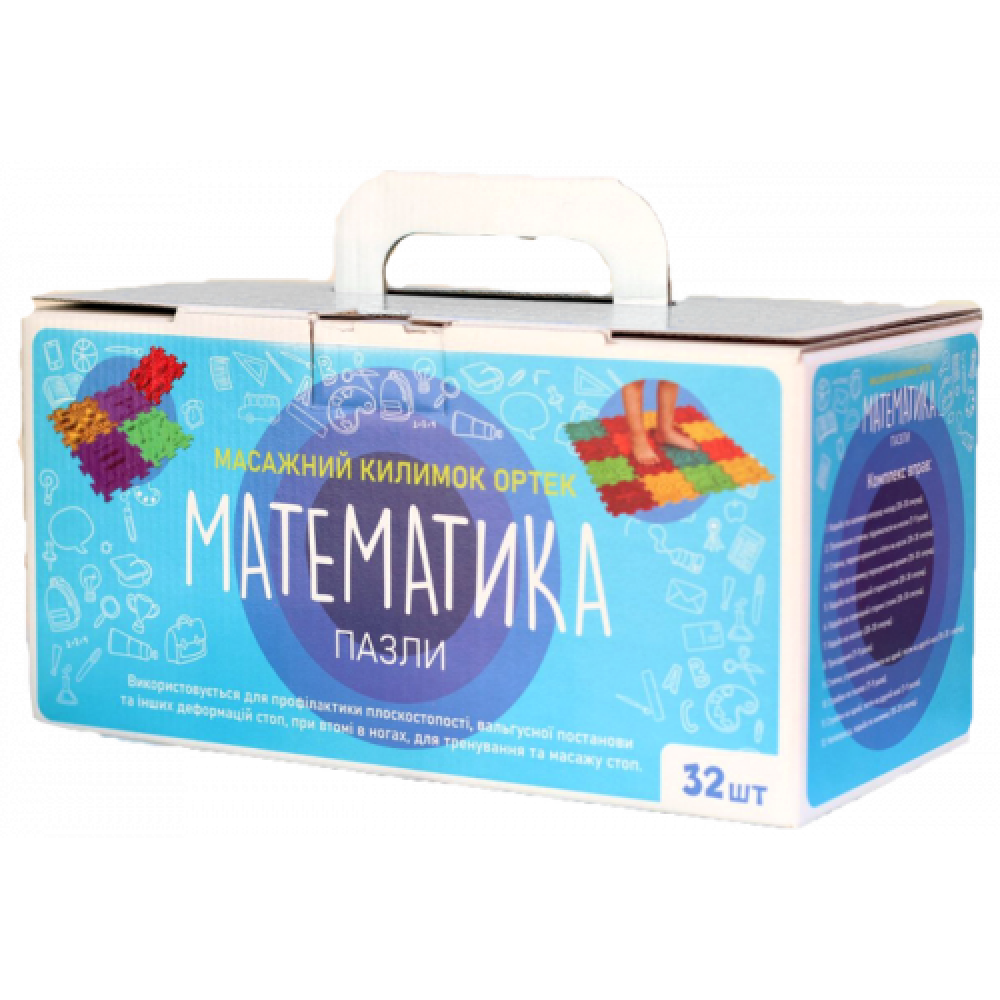 Orteki "Matemaatika" tajutundlik ortopeediline mattide komplekt on loodud jalatalla massaažiks, tajude integratsiooniks ja algsete matemaatika kontseptsioonide tutvustamiseks läbi aktiivsete liikumiste. Matid on valmistatud hügieenilisest, hüpoallergeensest PVC materjalist ja nende puslelaadne disain võimaldab lihtsat ümberkonfigureerimist ruumi ja laste vanuse kohandamiseks. Erinevad pinna tekstuurid stimuleerivad jalataldade närvilõpmeid, muutes paljajalu kõndimise kaasahaaravaks tajumistegevuseks, mida saab kasutada igapäevase liikumispausina lasteaias, koolis, tajutoas või kodus.