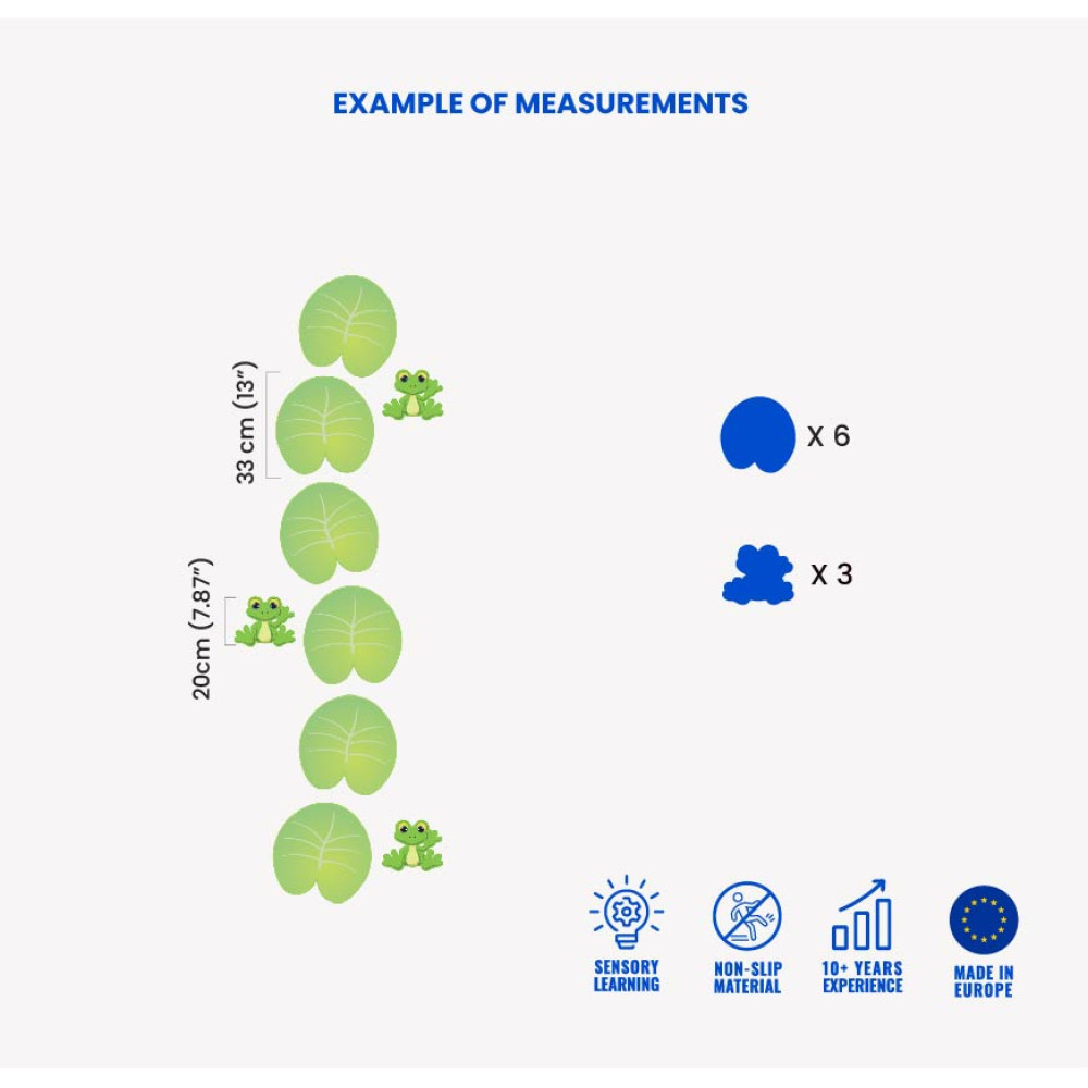 Floor sticker "Caterpillars" - will originally decorate the floor of a child's room, kindergarten or school classroom. After all, children are very active and curious - they crawl like little caterpillars, so this playful floor sticker will allow them to jump from leaf to leaf - thus encouraging play and promoting physical activity. Diameter of 1 leaf 30 cm. Advantages: - Easy to stick and remove. - The sticker is covered with the highest quality floor laminate, which will protect the sticker from wearing off and peeling. Attention! - When sticking the sticker, it is very important to clean the surface on which it will be stuck. - It is not recommended to stick stickers on uneven, rough surfaces. - When sticking the sticker, a good mood, patience, and thoroughness are required. - If you have not found the right color or size, write to us at info@www.sensorinisugdymas.lt and we will try to make it according to your preferences.