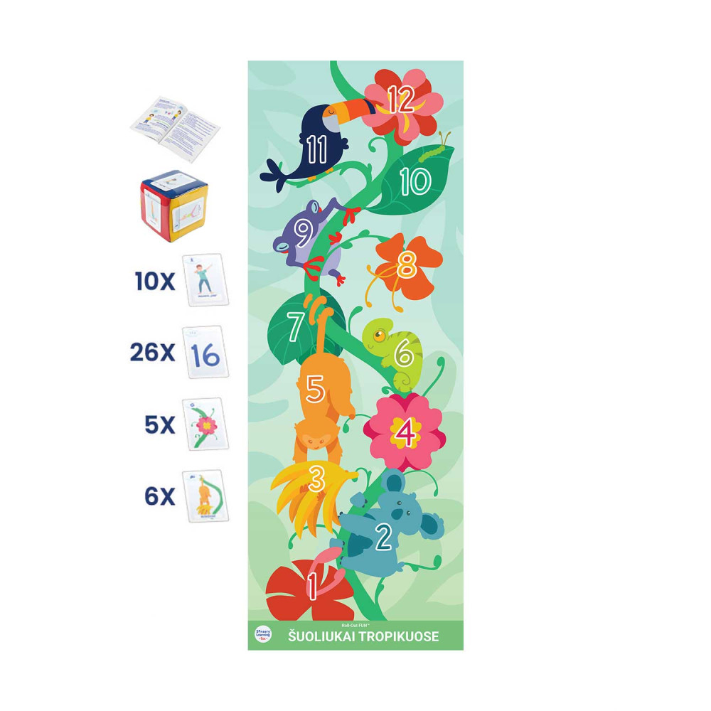 Kā spēlēt? Izklaidējošo izglītojošo Roll-Out Fun® paklāju "Izplešoties Tropos", izkaisiet visus rīkus uz tā, ļaujiet bērniem izpētīt un radīt spēles. Iekļautās spēles un mācību norādes ir konsultatīvas pēc savas būtības, jūs varat paplašināt izglītības iespējas ar savu mācību materiālu.