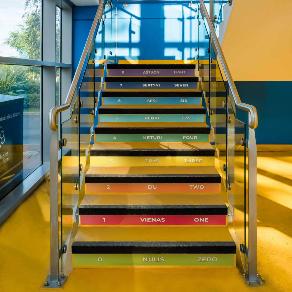 Krāsains izglītības solu stikeris ir inovatīvs un iesaistošs mācību līdzeklis, kas palīdz bērniem mācīties skaitīt gan lietuviešu, gan angļu valodā. Izglītības stikeri ir ideāli piemēroti skolas un bērnudārza kāpnēm, to spilgtā un krāsaina dizaina piesaista uzmanību. Izglītības stikeri var būt lielisks papildinošs iekļaujošs mācību instruments, kas palīdz bērniem mācīties arī bez mācībām.