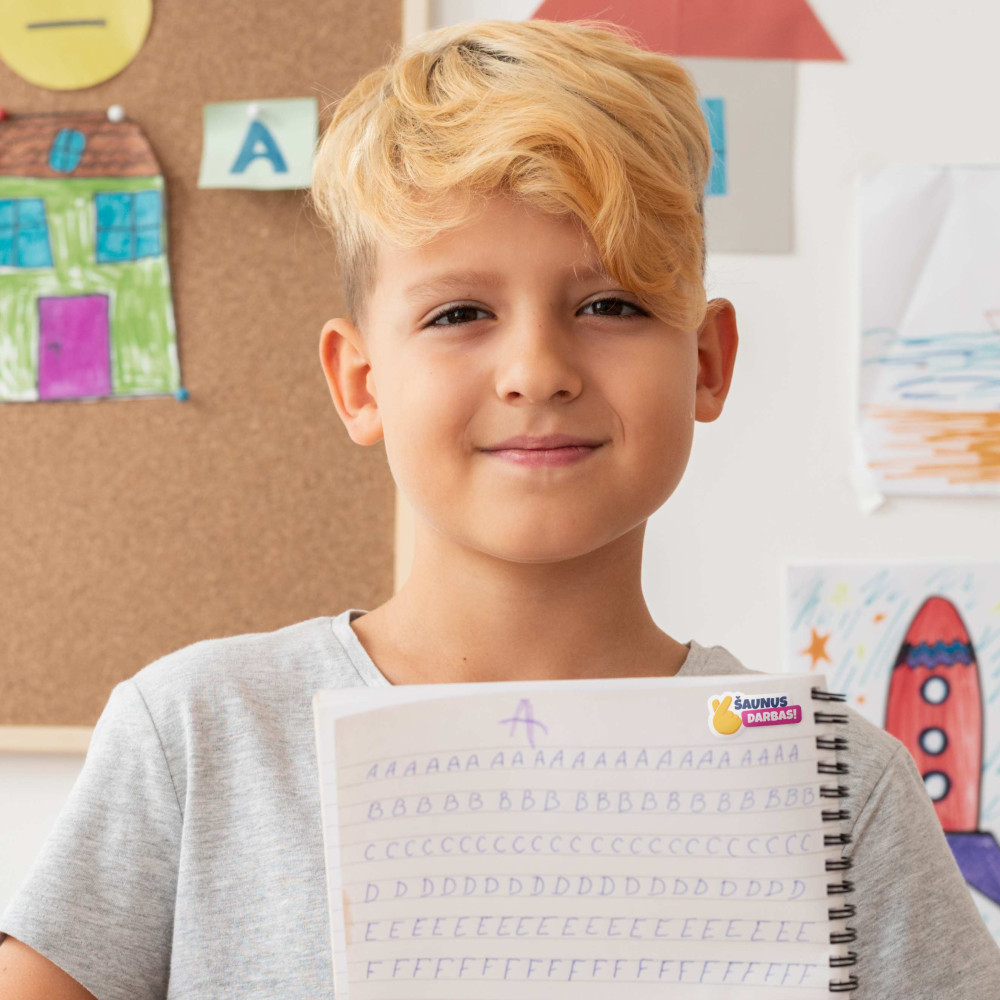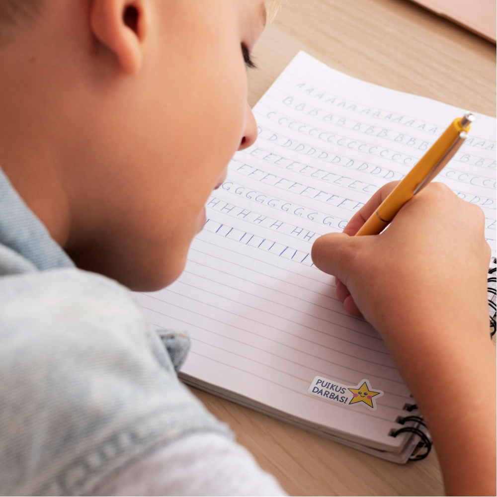 Original incentive stickers in Lithuanian are a playful tool that motivates children to strive for greater achievements and enjoy the learning process. These stickers are an excellent way for both teachers and parents to encourage and maintain a positive learning environment and help children feel satisfaction and joy for their accomplishments and efforts. It's a way to bring diversity into everyday learning.