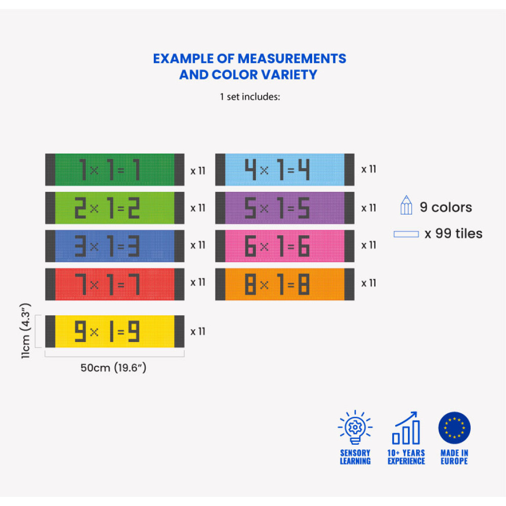 The set consists of 99 pcs. stickers (Multiplication table from 0 to 10)