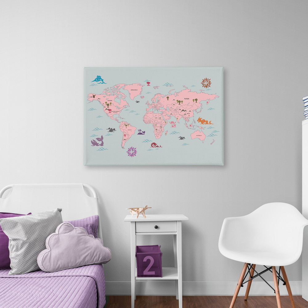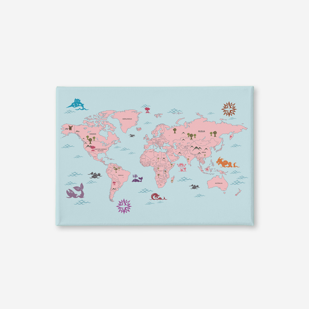 Image on canvas with a world map in Lithuanian can be an original gift for children or educators on September 1st.
