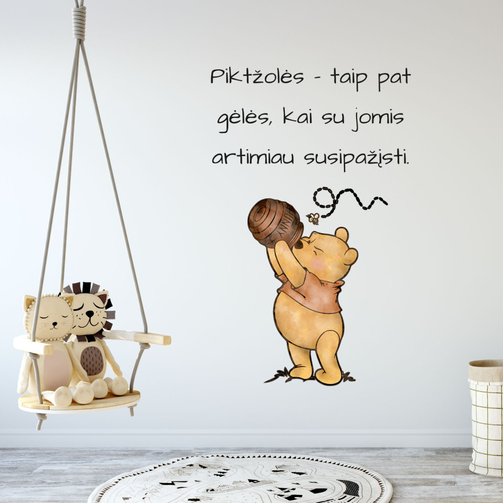 Klistrar med utbildande och inspirerande tankar om en älskad karaktär fixar bra upplevelser i barnets undermedvetande, främjar barnets emotionella intelligens. Mikė Pūkuotukas - lär sig att känna igen och märka det goda omkring sig. Observera! Snabbt och billigt uppdaterat interiör. Lätt avtagbar, lämnar inga märken på de flesta väggar, men vi rekommenderar att du provar på en liten yta innan du klistrar. Väggklistermärken hjälper till att dölja repor och ojämnheter på väggen. Fördelar: