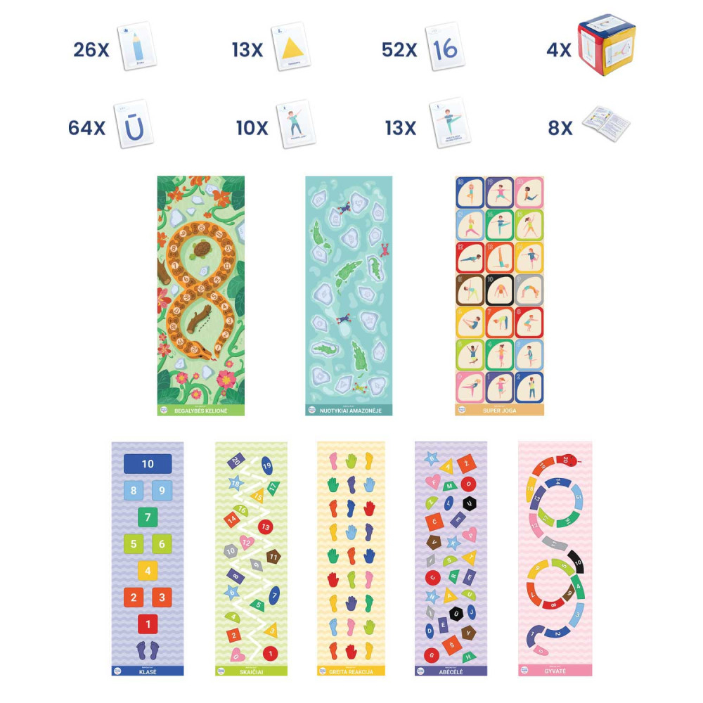 Roll-Out FUN® mattuthyrning tillsammans med tärning och ✅ pedagogiska "VETENSKAPENS Labyrinter" kort - det bästa alternativet för förskole- och lågstadiebarns idrottsevenemang, gemensamma födelsedagar, otraditionella utbildningsdagar, kulturella och pedagogiska aktiviteter, integrerade lektioner, sociala färdighetsträning, undervisning av barn med särskilda behov. Det bästa är att om du hyr mattorna kommer vi att ge dig en PRESENT värd 60 euro - 178 st. pedagogiska "VETENSKAPENS Labyrinter" kort!