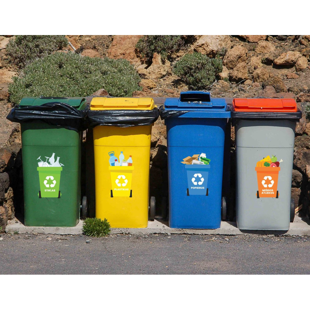 Waste sorting stickers will ensure an easier waste sorting process and educate environmental awareness. Colorful waste containers can be glued in kindergartens, schools, or other institutions that consider pollution a significant issue. Stickers can be glued on the wall or on the containers.