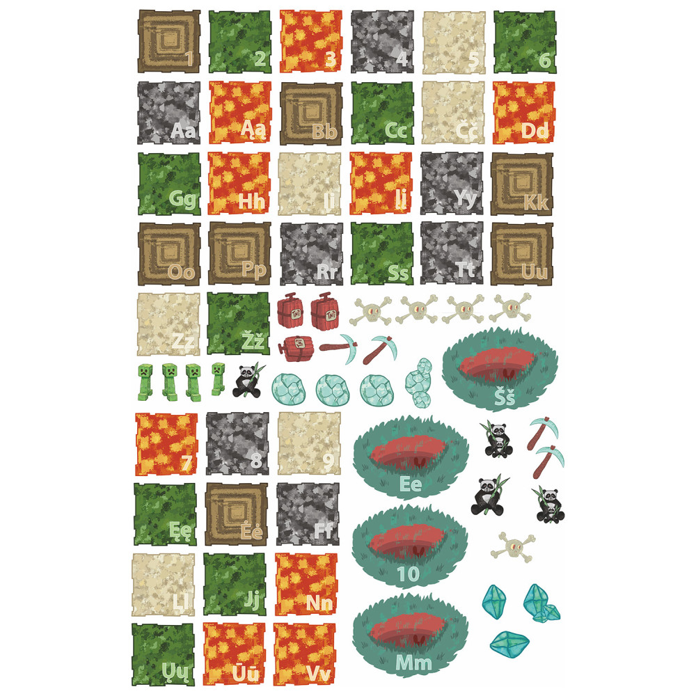 Playing helps to learn numbers and letters much easier. The game on the floor with Lithuanian alphabet and numbers. Create an original and cozy interior yourself and surprise the children by decorating their room or classroom with motifs of their favorite game!